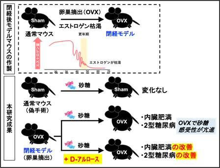 近年、腸ホルモンGLP-1(グルカゴン様ペプチド-1)を基盤とした製剤が、新たな抗肥満薬・抗糖尿病薬として注目されています。一方、食品成分である希少糖のD-アルロースが、甘味を有してゼロカロリーであるにもかかわらず、GLP-1分泌促進作用を有します。しかし、D-アルロースの閉経後の有用性については検証されていませんでした。
